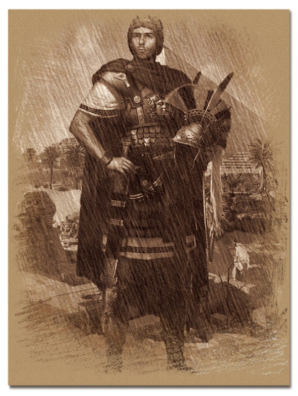 tres mercenarios y en la otra Ptolomeo, Hefestión, Calístenes y Filotas. El